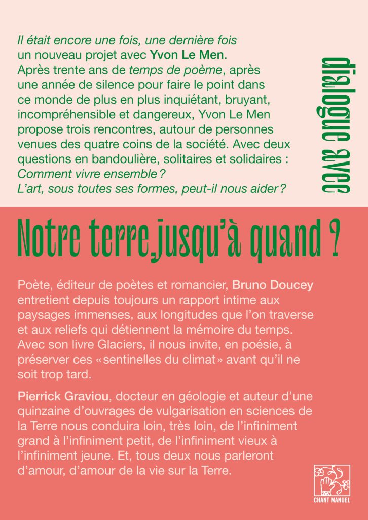 Une rencontre animée par Yvon Le Men, à noter sur vos agendas et à diffuser largement. On y parlera de la Terre, de la Vie, de science et de poésie.